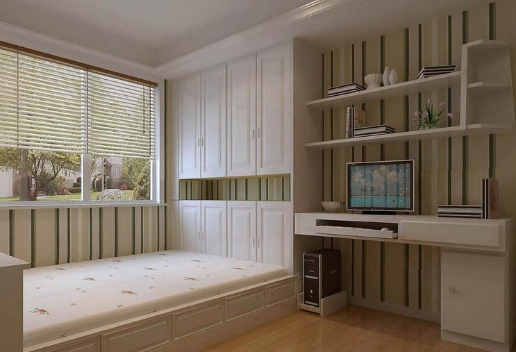 同時臥室裝修床頭上方的空間也是可以利用的,可以安裝寬10cm左右的隔板,高度最好在床面以上的75~85cm,以免碰頭。然后一些需要隨手放的東西可以考慮多功能儲物桌,尤其有女性的臥室這個桌子一定要有鏡子,要能放護膚品。